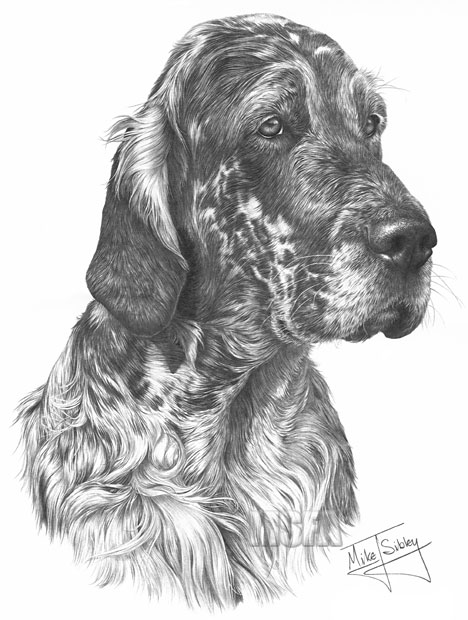 Beautiful Giclee print of a English Setter by Mike Sibley, a talented pencil artist.